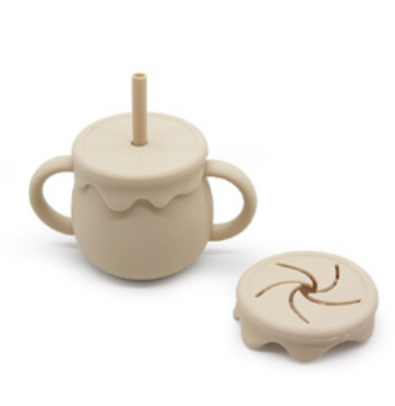 Deze beige siliconen sippy cup is dé musthave voor stijlvolle ouders én nieuwsgierige mini’s. Gemaakt van veilig, BPA-vrij siliconen en ontworpen met twee handige handgrepen voor kleine handjes. De bijgeleverde deksels – één met rietje en één met snackopening – maken dit bekertje multifunctioneel: drinken en snacken!